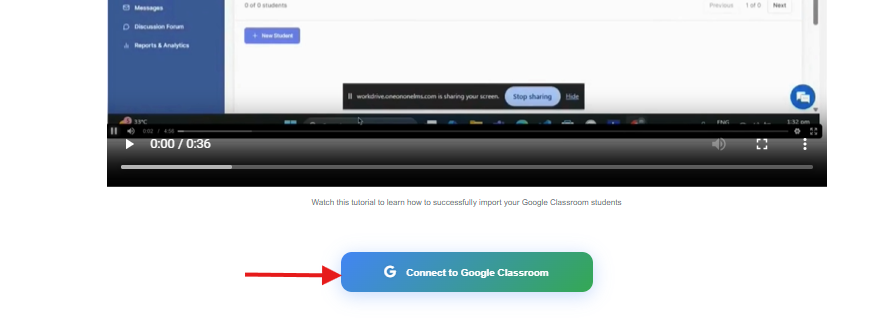 - Once there, scroll a little to the bottom of the page and you'll see the option to "Connect to Google Classroom". You'll also be able to watch a video tutorial on the steps needed to be followed to upload your Google Classroom.