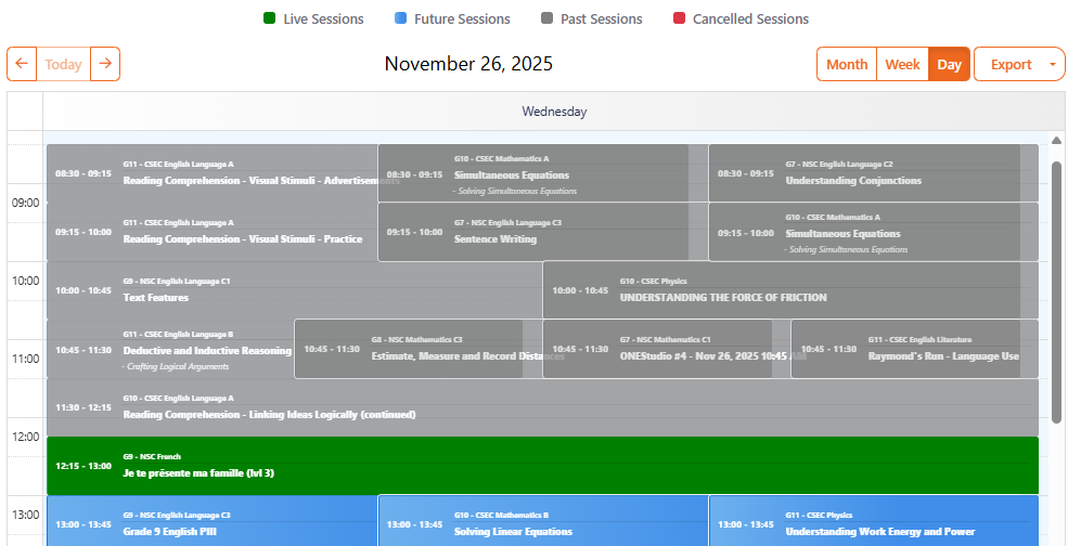 The Live Timetable on the One Academy platform gives you easy access to all upcoming live classes and past recorded sessions. To help you quickly find the lessons that are most relevant to you, the platform includes filtering features that allow you ...