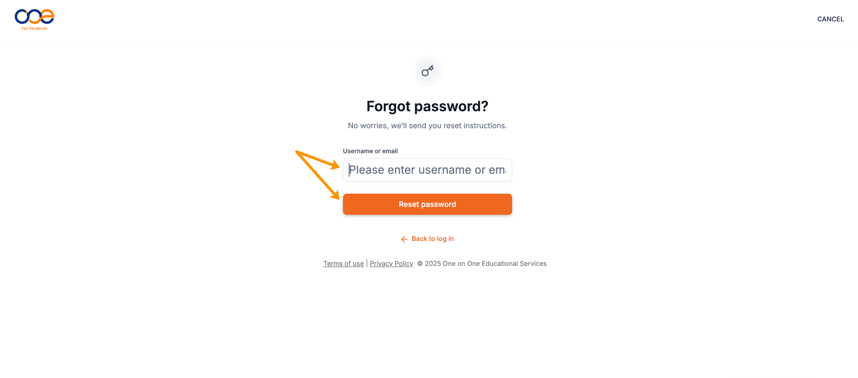 Beneath the login form, select the “Forgot password?” link. This will take you to the password reset page (as shown below):