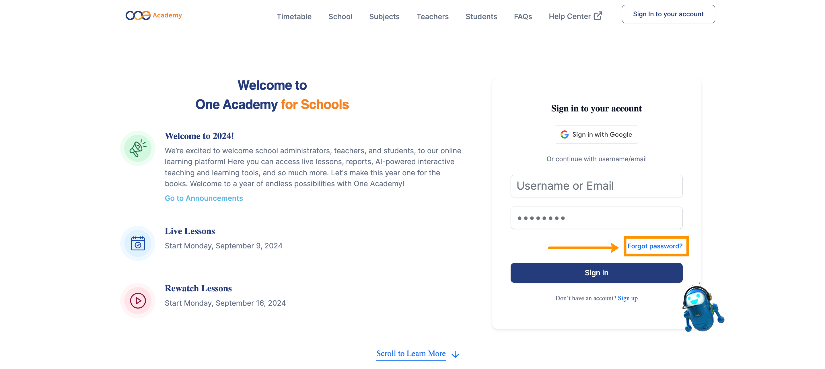 How to Sign In to One Academy's National Virtual School Platform